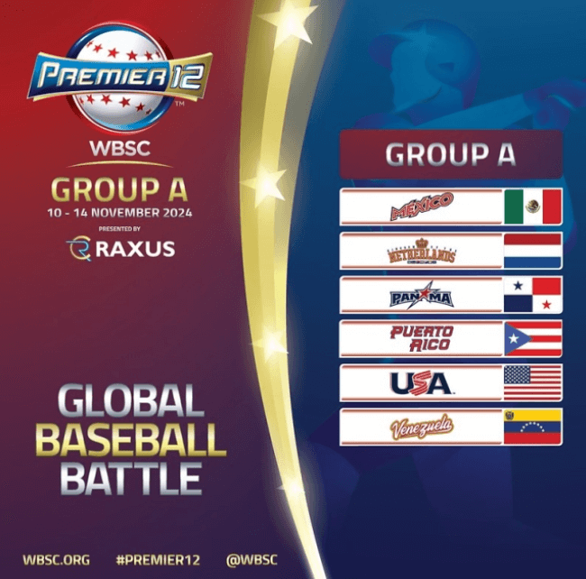 2024 3회 프리미어12 참가국은 대한민국, 일본, 멕시코, 대만, 미국, 네덜란드, 베네수엘라, 도미니카공화국, 쿠바, 호주, 푸에르토리코, 파나마국가가 출전합니다.